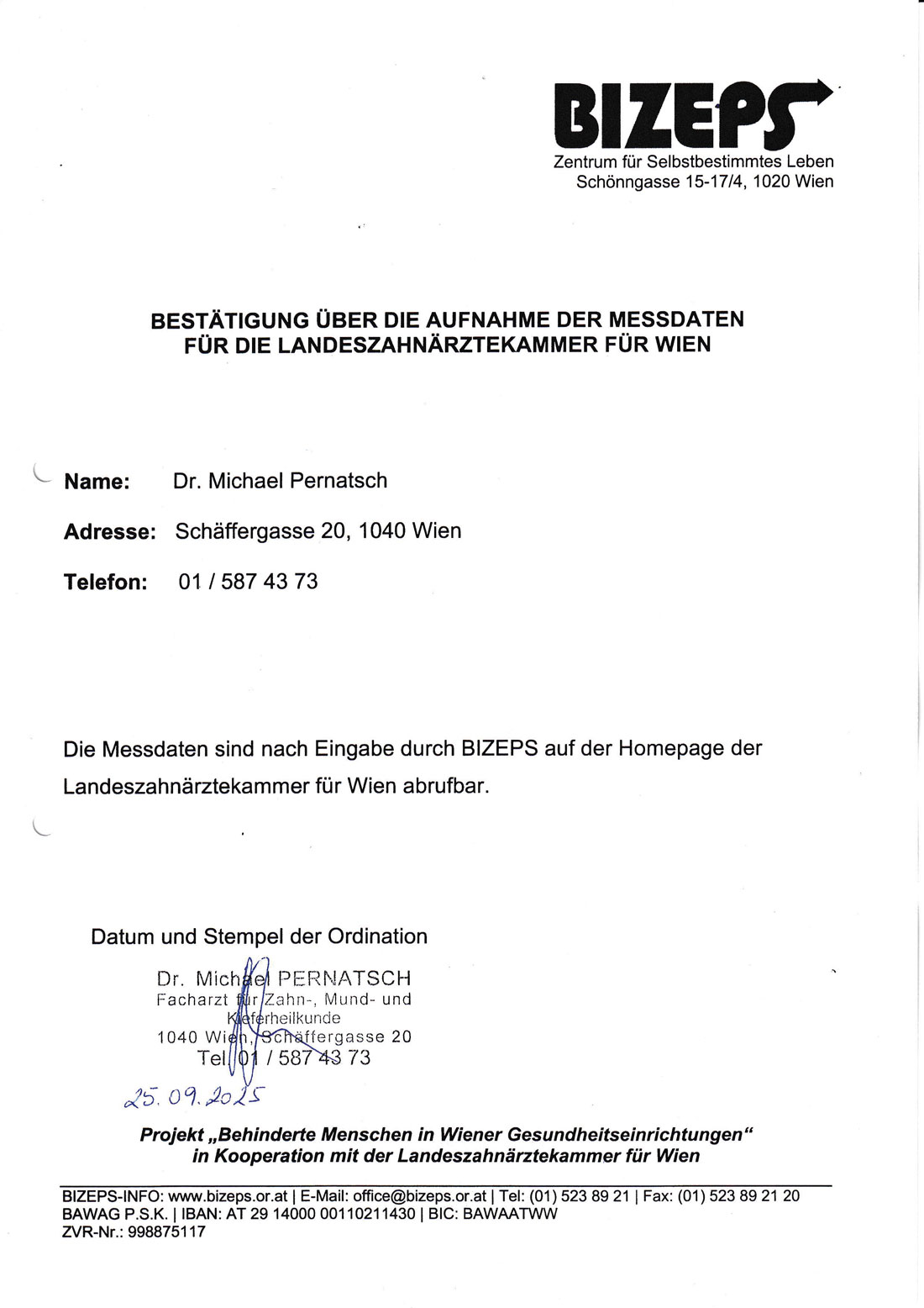 Wir freuen uns auf Ihren Besuch in der Zahnarztpraxis in 1040 Wien. Rufen Sie uns an oder vereinbaren Sie Ihren Termin online. Unser erfahrenes Team und Zahnarzt Dr. med. univ. Michael Pernatsch bieten Ihnen zielgerichtete und empathische Behandlung für Zahngesundheit und bei Zahnerkrankungen.